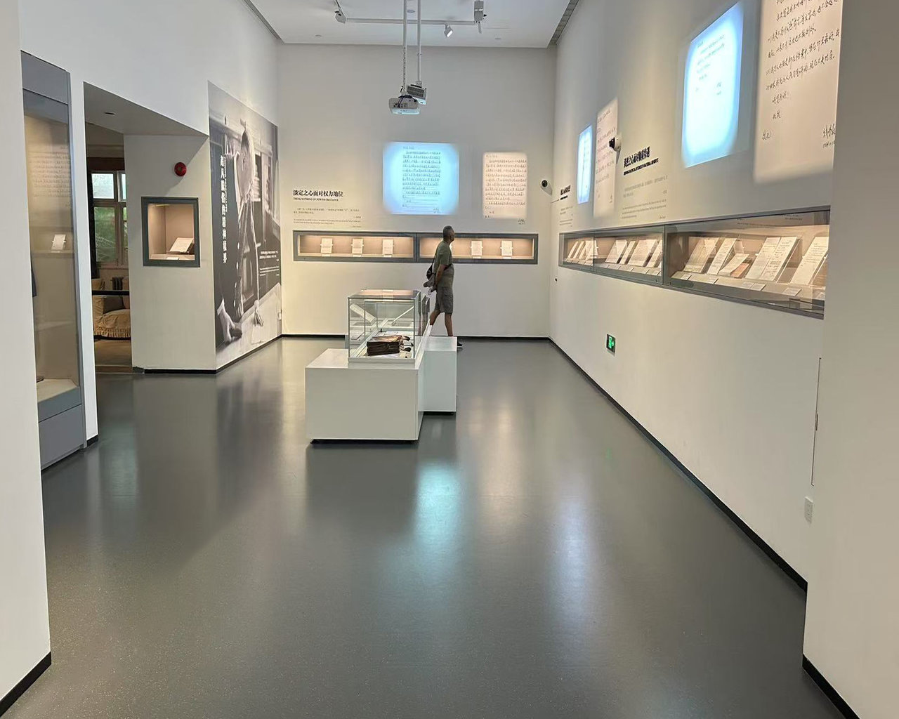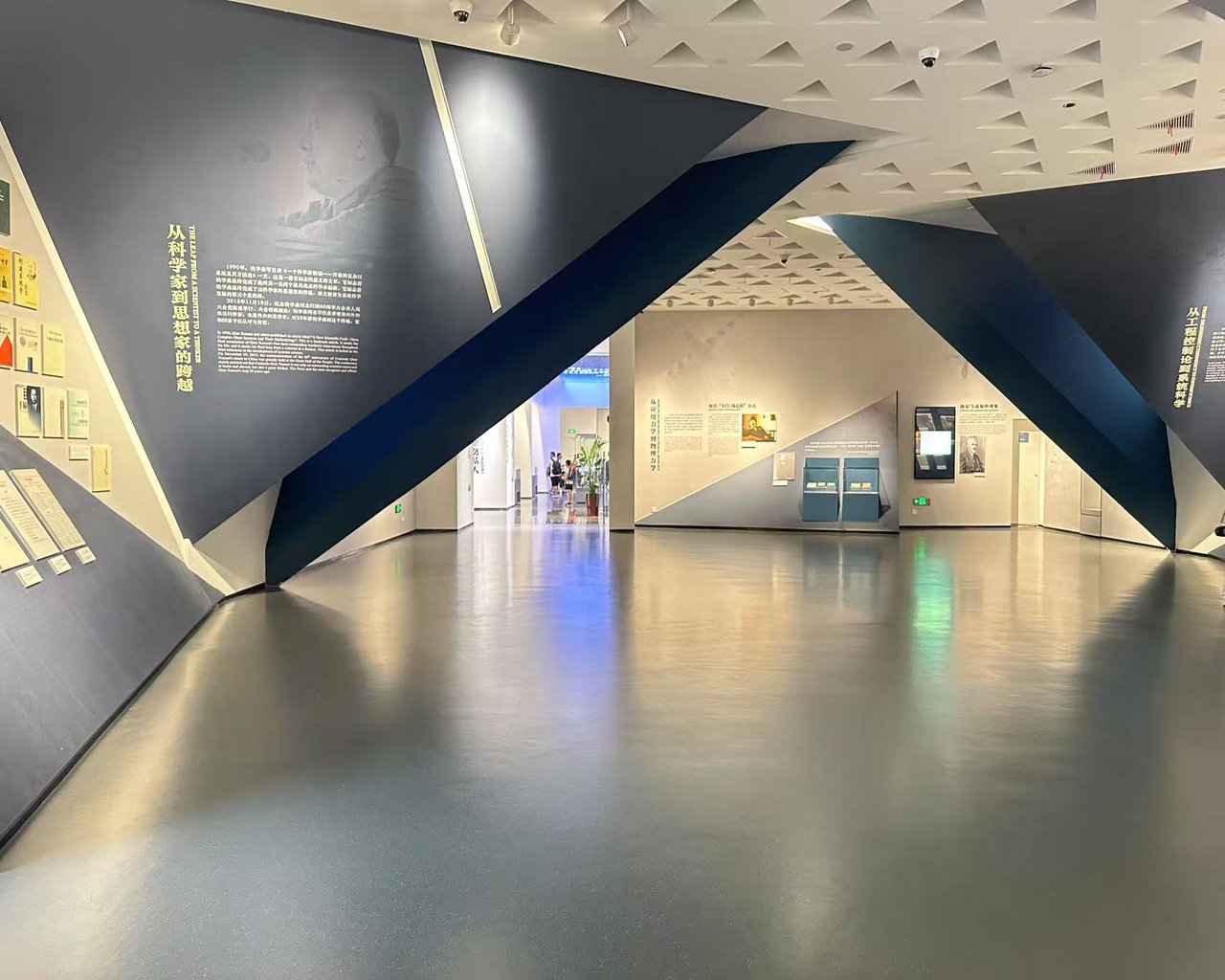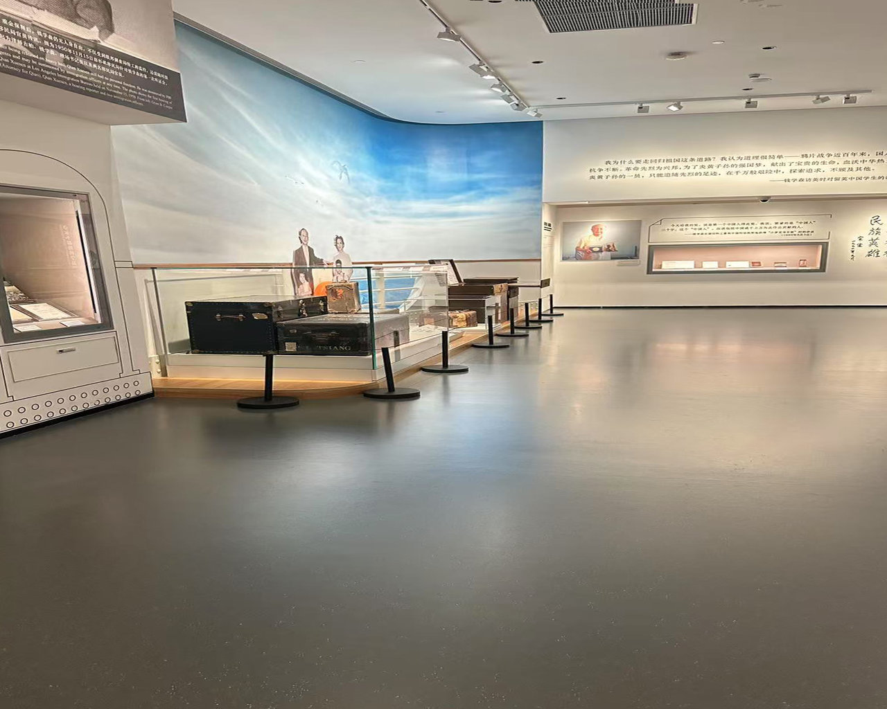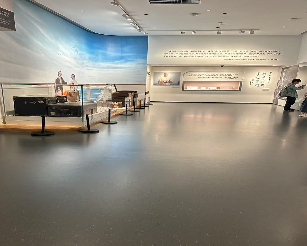 在视觉的塑造上,馆内采用大面积的橡胶地板进行铺设,确保了空间视觉的纯净与延展,避免了传统拼接材料可能带来的割裂感,使参观者沉浸于连贯而富有深意的展览中。