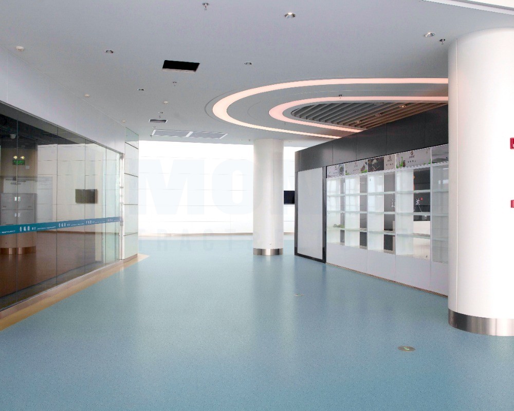 “选用的盟多橡胶地板Futura HD FD509 响蓝,使地面如湖面澄净,体现了芜湖山水之城的诗意,缀以明亮的黄色,以增添暖意。”
