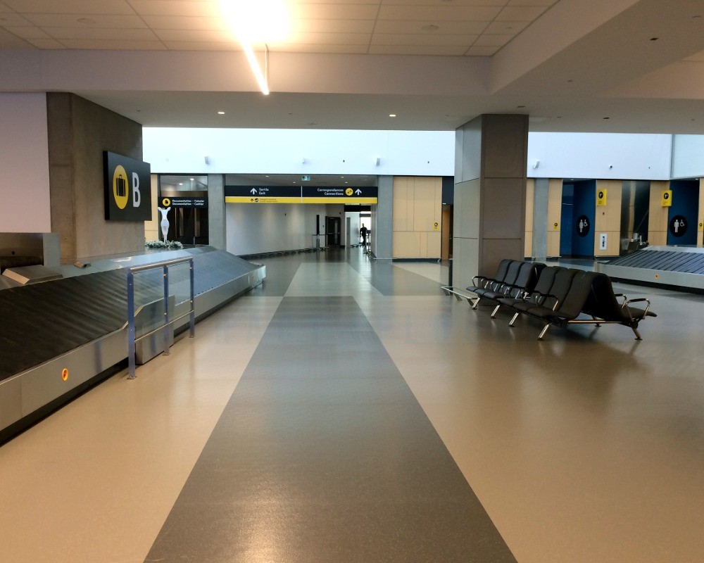 “加拿大Quebec Airport机场在行李提取区域选用了盟多Futura HD橡胶地板,以功能性配色(灰色与浅米色)构建了兼具高效运营与温馨氛围的抵达空间。”
