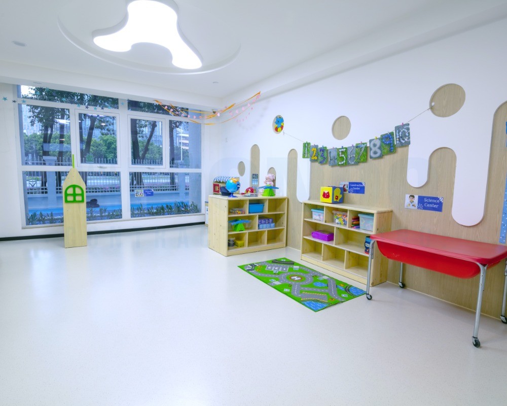 通过巧妙地布局和设计,学校可以将橡胶地板与其它元素结合,创造出多功能的学习空间。例如,可以在盟多橡胶地板上设置多个游戏角落、小组讨论区域,甚至是户外课堂。盟多橡胶地板柔软、环保、易清洁、比其它地面材料更温暖,老师可以带领学生席地而坐,进行交流和探讨。