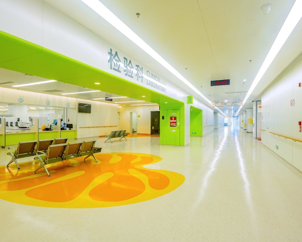 “深圳市儿童医院龙华院区大规模的采用盟多橡胶地板Harmoni多冠系列,总面积达33,500平方米,打造绿色环保、亲和自然的医疗环境,为儿童患者和医护人员带来了,更加安全、舒适的体验。”