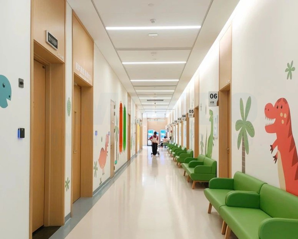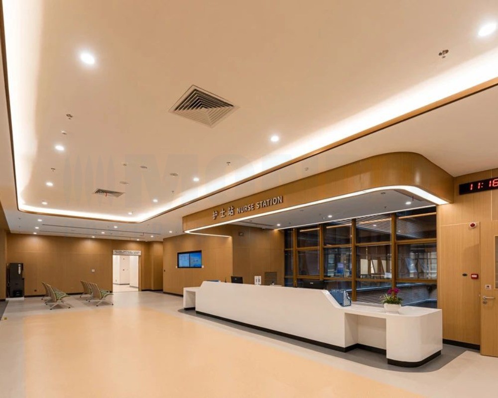 盟多Linear米拉系列橡胶地板。它摒弃传统医疗地材的冰冷单调,以“木纹的温暖”与“大理石的宁静”创新融合,为病房空间铺就一层兼具自然疗愈力与艺术美感的“情绪缓冲带”。木纹唤起人对自然的亲近感,降低焦虑,大理石纹则传递纯净与稳定感,缓解空间压迫性。盟多Linear米拉系列通过独特的纹理技术,让两种自然肌理和谐共生。Linear米拉系列不仅满足高强度使用的需求,其抗菌性及易清洁性也降低了清洁频率,为患者与医护人员提供安全洁净的休养与工作环境。