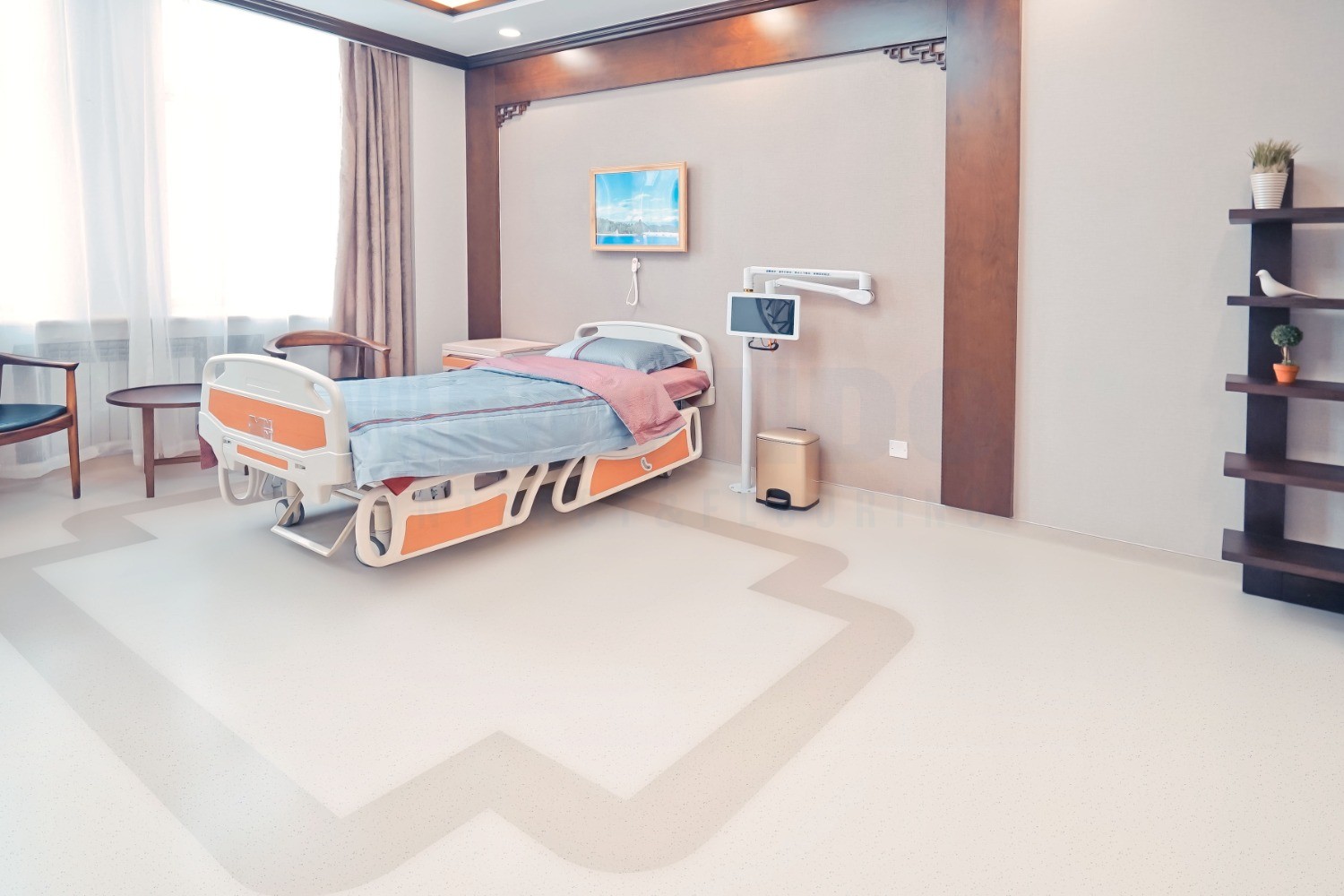 此次超过24 ,700平米的盟多橡胶地板,被广泛应用于医院的病房、走廊、护士站、诊疗区、手术室辅助区域等关键空间。其一体化的铺装不仅实现了功能上的全面提升,更以简约现代的设计美学,提升了医院的整体环境品质。项目竣工后,医院地面在安全性、洁净度、静音效果及后期维护便捷性等方面均获得了显著改善,赢得了院方与使用者的高度认可。