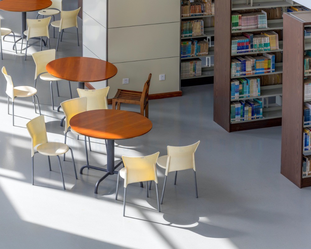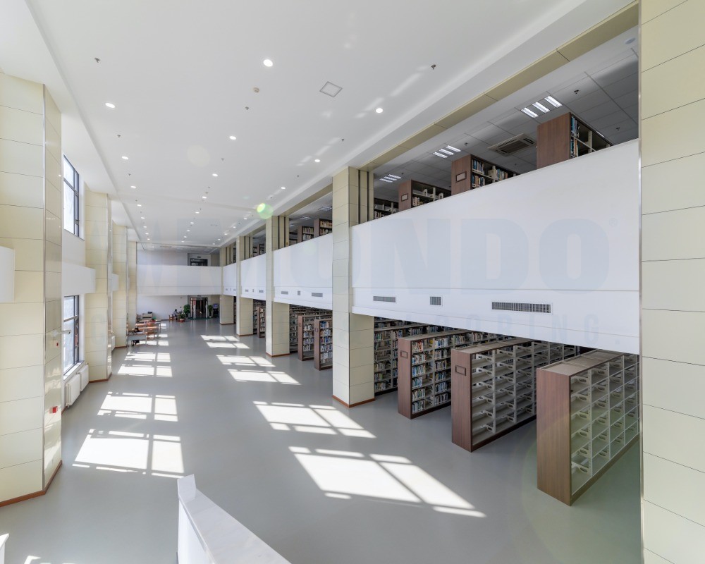 盟多橡胶地板是环保的,不含增塑剂、重金属及其它有害物质,经过美国GREENGUARD金牌认证和德国蓝天使认证,有助于维持图书馆良好的室内空气质量。