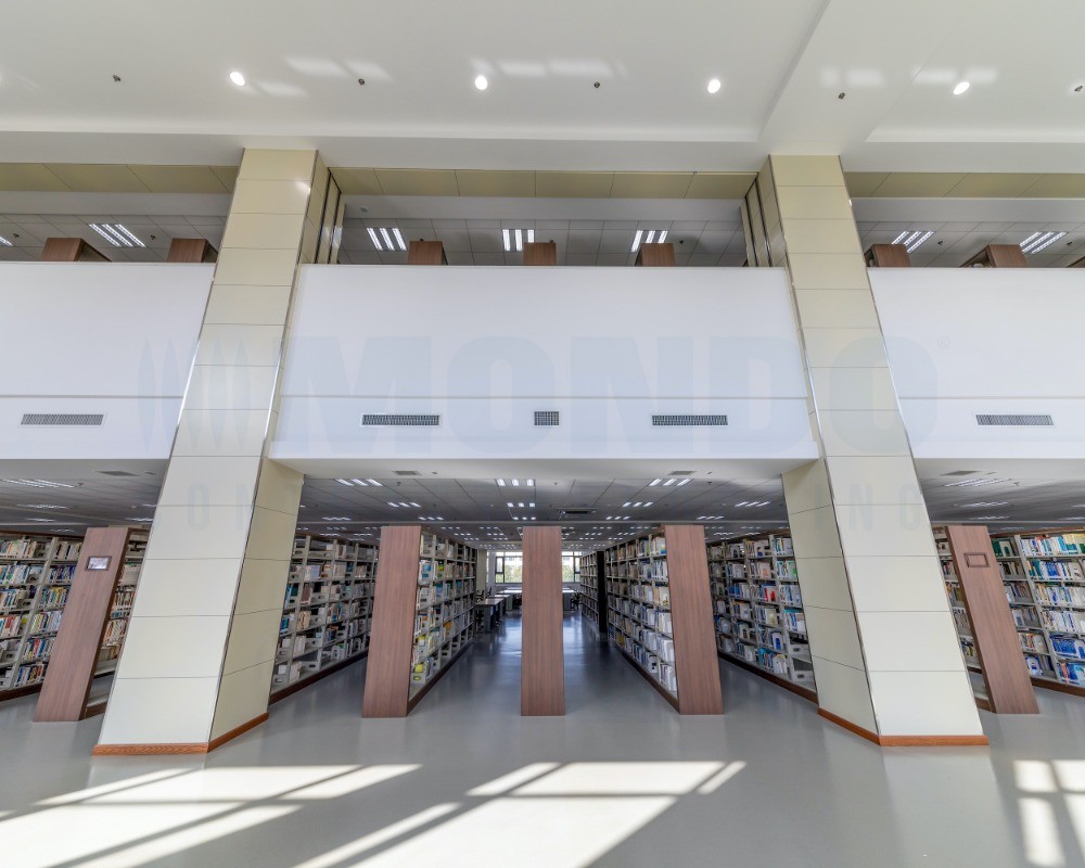 西安理工大学曲江校区图书馆整体以规整、方正的建筑形体为设计基调,利用方与圆的结合,不仅丰富了场地的现状,同时也体现了中国传统文化中“天圆地方”的理念。西安理工大学曲江校区图书馆荣获“2020-2021年度第一批中国建设工程鲁班奖”。西安理工大学曲江校区图书馆选择了意大利MONDO盟多橡胶地板PUNTI多昂系列16,400㎡。