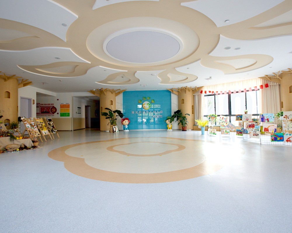 “杭州锦北街道中心幼儿园在大厅、教室、活动室、走廊使用了盟多地板PIXEL康赛和XT300康星,共计铺设7,000m²。”