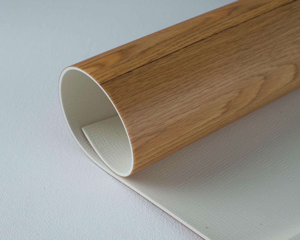 拥有复合 PVC 地板和墙布两种,双层玻璃纤维稳定层,有木纹、水泥纹、亚麻纹、金刚砂等多种花纹,可适用于不同环境。